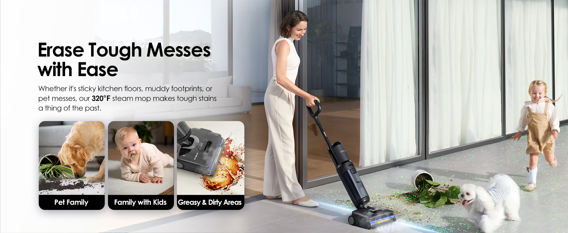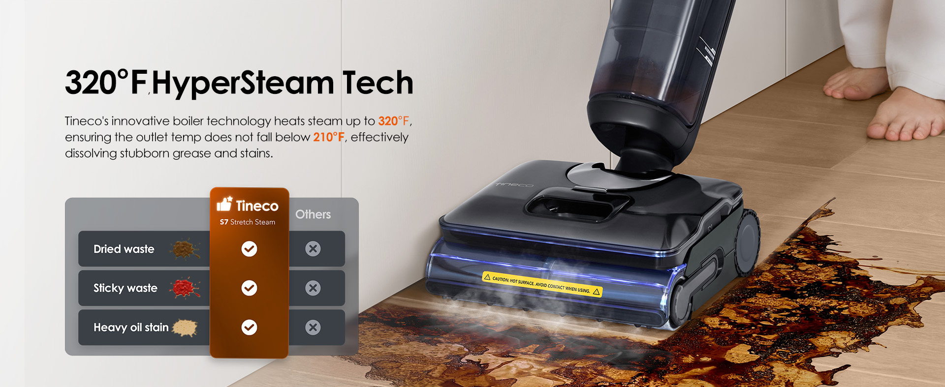 Deep Cleaning With 320°F Steam: Wider Reach, More Flex!